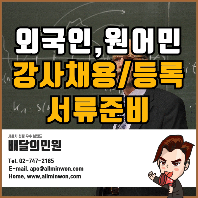 국내에서 외국인이 강사로 활동하기 위해서는 학위증명서, 본국 범죄경력증명서에 대한 아포스티유 확인서 및 대한민국 공관 공적확인을 받은 서류를 교육청에 제출하여 인정받아야 합니다. 자세한 내용 확인은 클릭 해주세요!